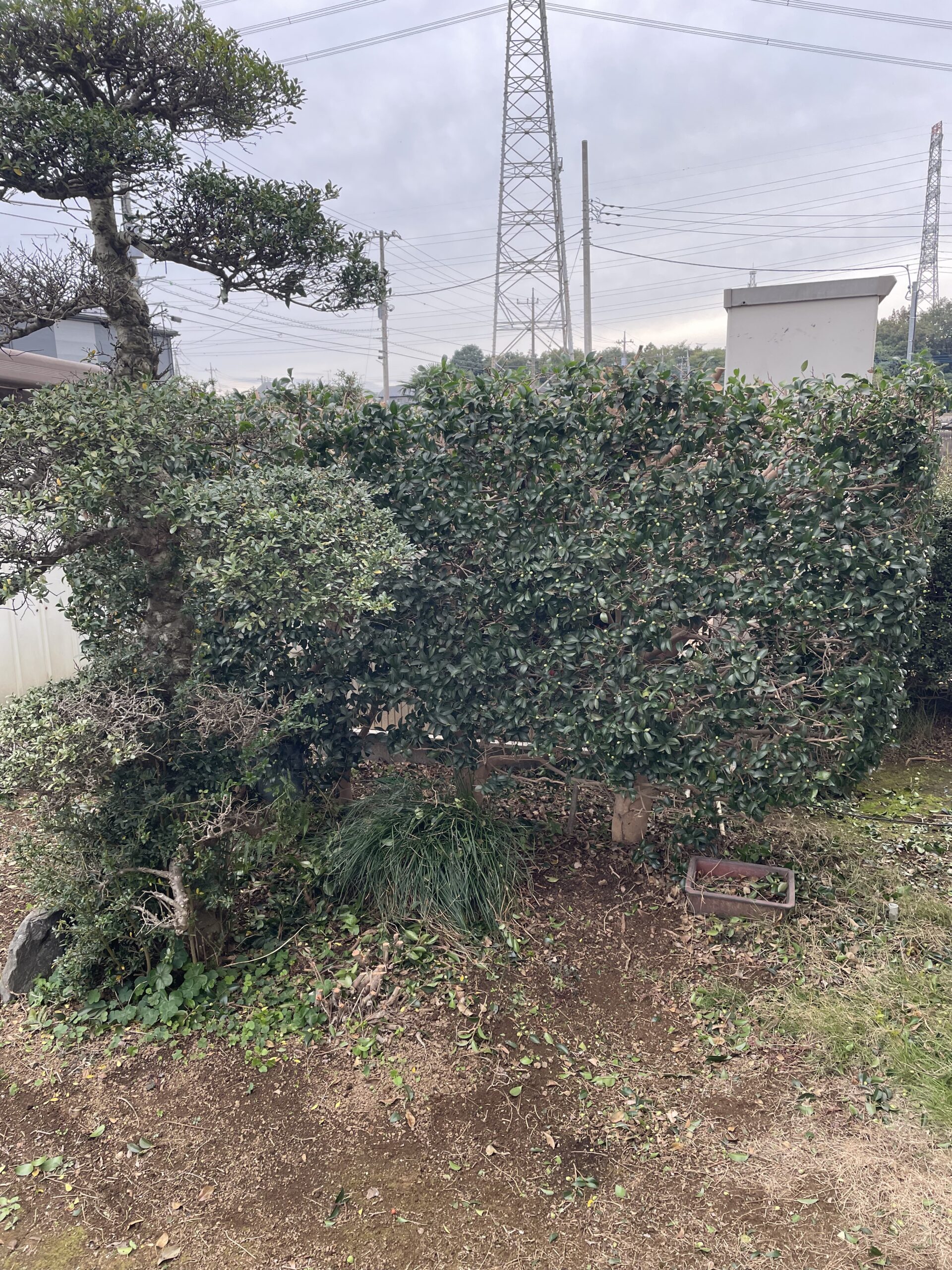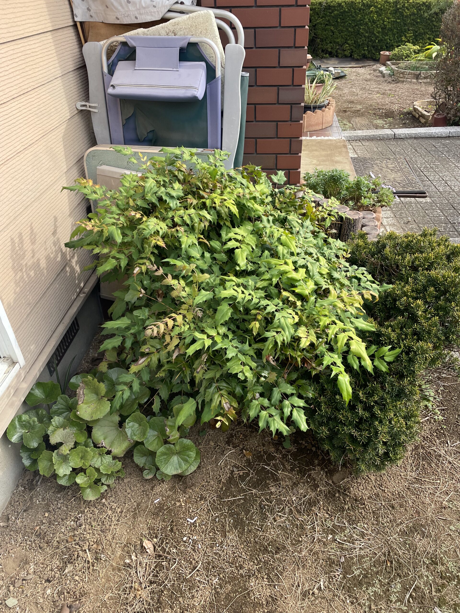 下の写真は、垣根のみの剪定と葉のトゲトゲした植物を伐採したものとなります。