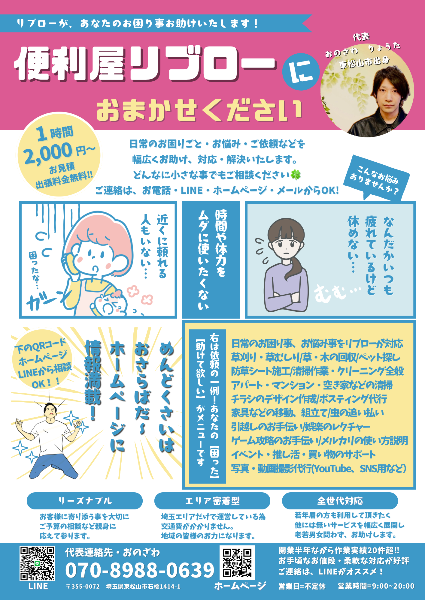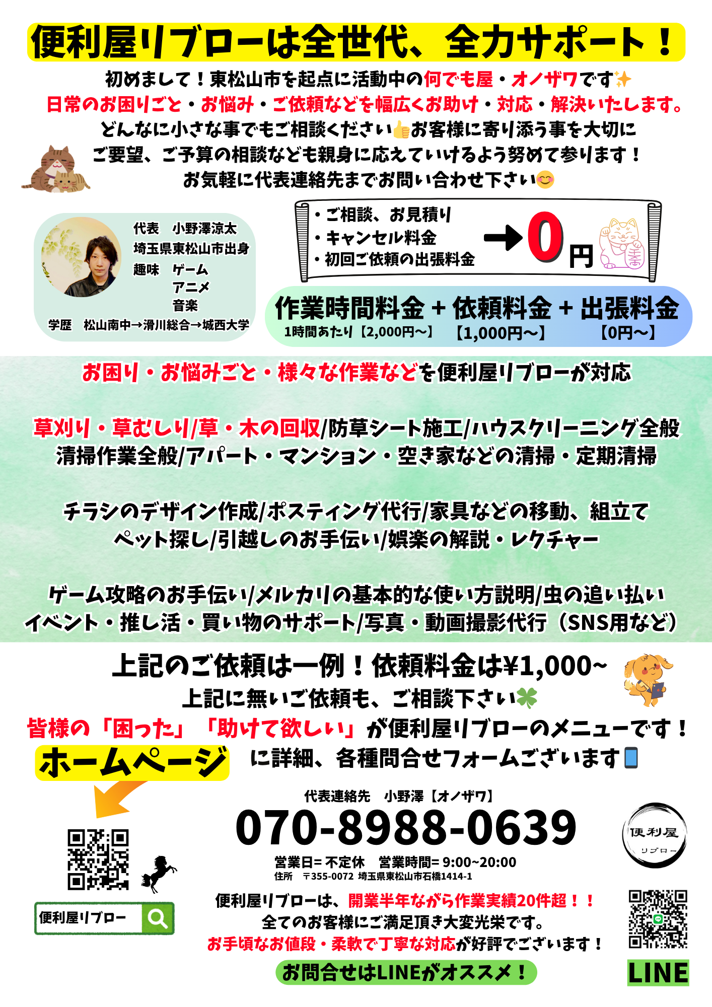 あなたの『お困り事』『助けて欲しい事』は便利屋リブローにお任せ🍀