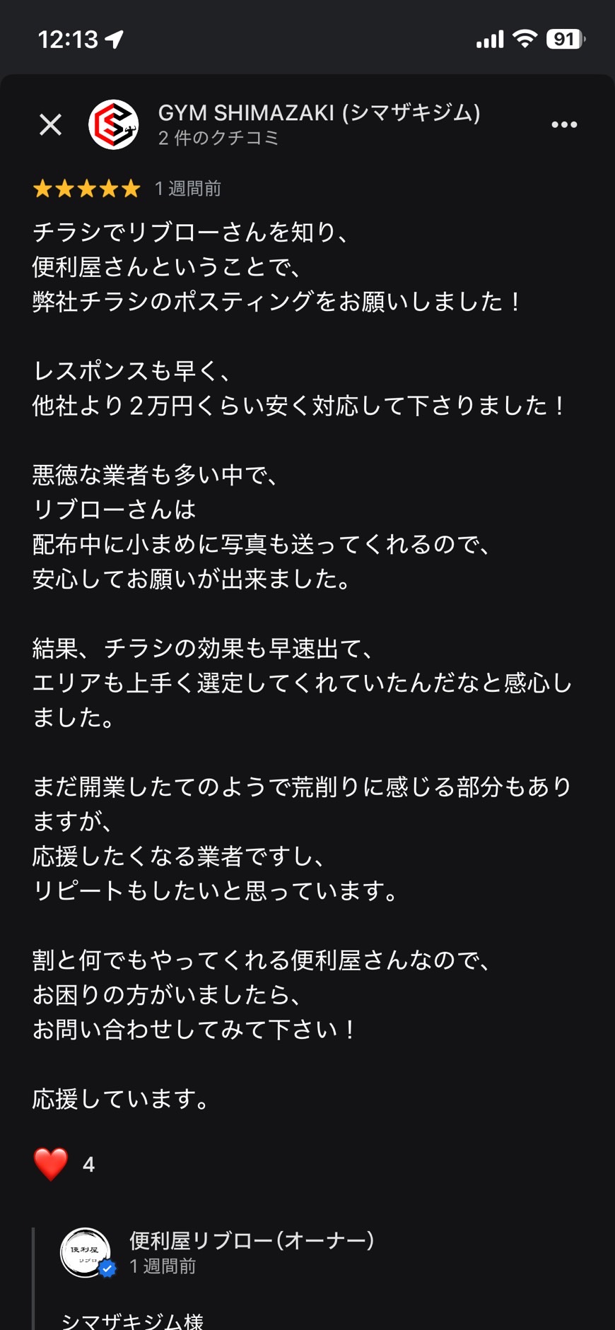 完全に0の状態から便利屋をスタートし始め自分で、チラシ配り【ポスティング】を開業してから東松山市を中心に歩き周り15,000~20,000枚ほど行いました!